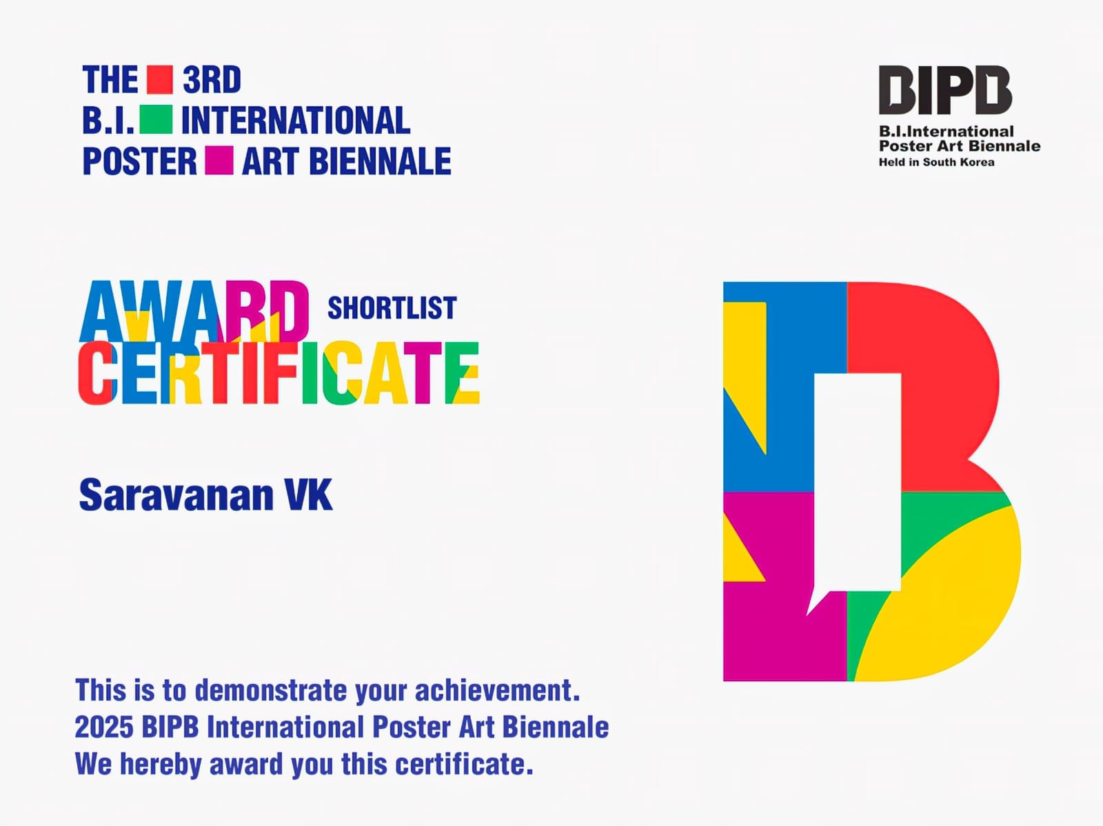 തേവര എസ്.എച്ച്. കോളേജിലെ ഡിസൈൻ വിഭാഗത്തിൽ അസി.പ്രൊഫസറായ വി.കെ. ശരവണൻ്റെ പോസ്റ്ററുകൾ ഇതിനുമുമ്പും അന്താരാഷ്ട്ര പോസ്റ്റർ ആർട്ട് ബിനാലെയിലേക്ക് തിരഞ്ഞെടുക്കപ്പെട്ടിട്ടുണ്ട്. പോസ്റ്റർ ഡിസൈനിംഗിൽ നിരവധി അവാർഡുകളും ശരവണനെ തേടിയെത്തിയിട്ടുണ്ട്. സ്മൃതി സമൃദ്ധമായ ഇന്നലെകളിൽ നിന്നുകൊണ്ട് ഇന്നിൻ്റെ തീഷ്ണ യാഥാർത്ഥ്യങ്ങളിലേക്ക് വിരൽ ചൂണ്ടുന്ന ചിത്രങ്ങൾ. നാം മാറേണ്ട സമയം കടന്നുപോയിരിക്കുന്നു എന്ന ഓർമ്മപ്പെടുത്തൽ. നാളെയുടെ വസന്ത സ്വപനങ്ങൾ കൂടിയാണവ.