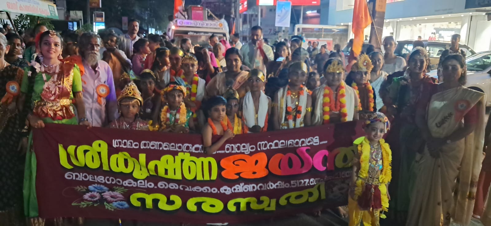 വൈക്കം: ക്ഷേത്രനഗരി അമ്പാടിയായി. താളമേളങ്ങളുടെയും ആരവങ്ങളുടെയും ഉൽസവ ലഹരിയിൽ ഉണ്ണിക്കണ്ണൻമാരും ഗോപികമാരും നൃത്തമാടി. വൈക്കത്ത് ബാലഗോകുലത്തിന്റെ നേതൃത്വത്തിൽ ശ്രീകൃഷ്ണ ജയന്തി മഹാശോഭായാത്ര ആഘോഷിച്ചു. ഗംഗ എന്ന് പേരിട്ട ശോഭായാത്ര ആറാട്ടുകുളങ്ങര ചീരംകുന്നുംപുറം പാർത്ഥസാരഥി ക്ഷേത്രത്തിൽ നിന്നും ആരംഭിച്ച കിഴക്കേ നട വഴി വൈക്കം വലിയ കവലയിലെത്തി. യമുന ശോഭായാത്ര തെക്കെനട ഇണ്ടംതുരുത്തിൽ കാർത്ത്യായനി ക്ഷേത്രത്തിൽ നിന്നും ആരംഭിച്ച് അയ്യർ കുളങ്ങര, കാളിയമ്മനട എന്നിവിടങ്ങളിലെ ശോഭായാത്രയുമായി സംഗമിച്ച് വലിയ കവലയിൽ എത്തിച്ചേർന്നു. സരസ്വതി ശോഭായാത്ര ഉദയനാപുരം ക്ഷേത്രത്തിൽ നിന്നും ആരംഭിച്ച് വലിയകവലയിൽ എത്തി. ഗോദാവരി ശോഭായാത്ര പോളശ്ശേരി ഭഗവതി ക്ഷേത്രത്തിൽ നിന്നും ആരംഭിച്ച് പനമ്പുകാട് ശോഭായാത്രയുമായി സംഗമിച്ച് വലിയ കവലയിൽ എത്തി. നർമ്മദ ശോഭായാത്ര വടക്കേ നടയിലെ വിശ്വഹിന്ദു പരിക്ഷത്തിന്റെ ശാസ്താ ക്ഷേത്രത്തിൽ നിന്നും ആരംഭിച്ചു. സിന്ധു ശോഭായാത്ര ചാലപറമ്പിൽ നിന്നും ആരംഭിച്ച് പുളിഞ്ചുവട് ശോഭായാത്രയുമായി വലിയ കവലയിൽ എത്തി. വിവിധ ഭാഗങ്ങളിൽ നിന്നും വന്ന ശോഭായാത്രകൾ വലിയ കവലയിൽ സംഗമിച്ചതോടെ മഹാശോഭായാത്ര ആരംഭിച്ചു .മുൻ പോലിസ് മേധാവി ഡോ.ടി.പി. സെൻകുമാർ മഹാശോഭായാത്ര ഉദ്ഘാടനം ചെയ്തു. കെ.എസ്.ആർ.ടി.സി, ബോട്ട് ജട്ടി, കച്ചേരി കവല, പടിഞ്ഞാറെ നട വഴി വൈക്കം ക്ഷേത്രത്തിൽ പ്രവേശിച്ചതോടെ മഹാശോഭായാത്ര സമാപിച്ചു. വൈക്കം താലൂക്ക് ആഘോഷ പ്രമുഖ് കെ.ഡി. സന്തോഷ്, സഹപ്രമുഖ് എം .മനോജ്, പ്രസിഡണ്ട് കെ. ശിവ പ്രസാദ്, കാര്യദർശി പ്രീയ ഗിരിഷ് എന്നിവർ നേതൃത്വം നല്കി.