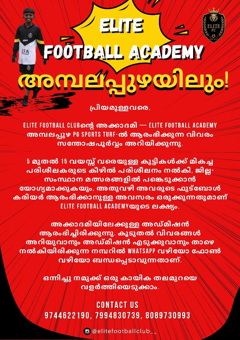 എലൈറ്റ് ഫുട്ബോൾ ക്ലബ്ബ് കൂടുതൽ ശാസ്ത്രീയമായ പരിശീലന രീതികൾ അവലംബിക്കുകയും യുവ കളിക്കാർക്കായി എലൈറ്റ് ഫുട്ബോൾ അക്കാദമി ആരംഭിക്കുകയും ചെയ്തു. കുട്ടികൾക്കും കൗമാരക്കാർക്കും ഫുട്ബോളിന്റെ ബാലപാഠങ്ങൾ മുതൽ നൂതന തന്ത്രങ്ങൾ വരെ പഠിക്കാൻ ഇത് അവസരം നൽകി. നിരവധി യുവ പ്രതിഭകൾക്ക് ക്ലബ്ബ് ഒരു വഴികാട്ടിയായി മാറി.