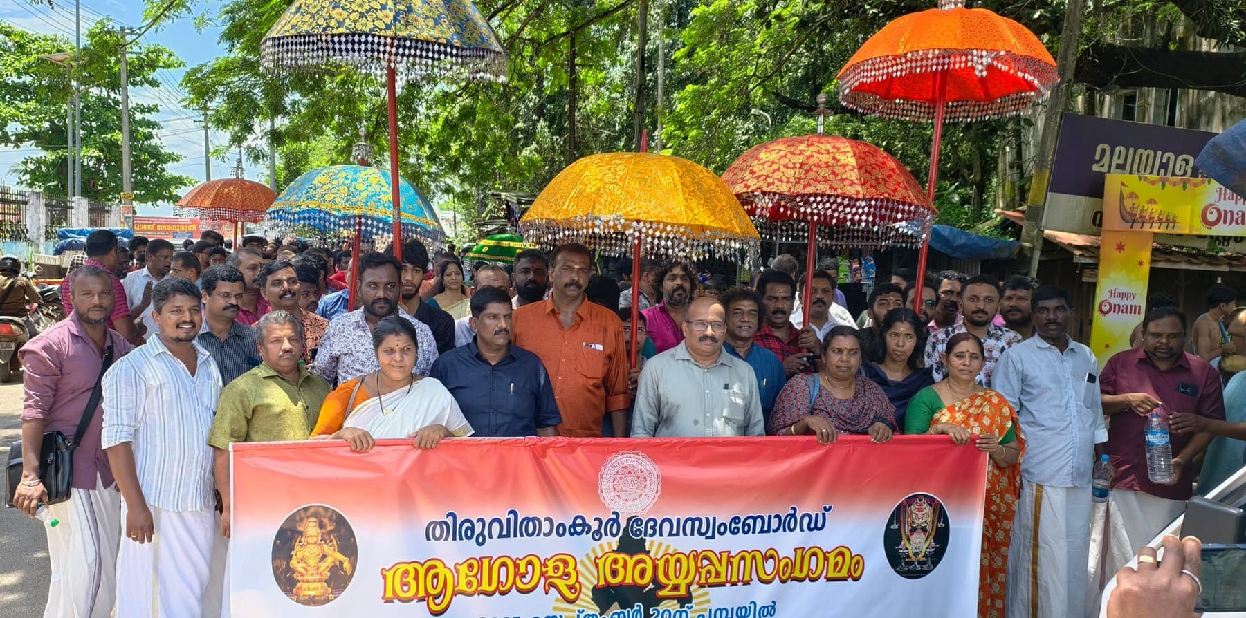 വൈക്കം: തിരുവിതാംകൂർ ദേവസ്വം ബോർഡ് സെപ്തംബർ 20 ന് പമ്പയിൽ സംഘടിപ്പിക്കുന്ന ആഗോള അയ്യപ്പ സംഗമത്തിൻ്റെ പ്രചരണാർത്ഥം വൈക്കം ഗ്രൂപ്പിലെ ജീവനക്കാരുടേയും ക്ഷേത്ര കലാപീഠത്തിൻ്റേയും നേതൃത്വത്തിൽ വൈക്കം നഗരത്തിൽ വിളംബര ഘോഷയാത്ര നടത്തി. രാവിലെ 11-30 ന് വടക്കേ കൊട്ടാരത്തിൽ നിന്നും ആരംഭിച്ച വിളംബര ഘോഷയാത്ര ശബരിമല മുൻ മേൽശാന്തി വി മുരളീധരൻ നമ്പൂതിരി ഉദ്ഘാടനം ചെയ്തു. ക്ഷേത്രകലാപീഠം അദ്ധ്യാപകരുടേയും വിദ്യാർത്ഥികളുടേയും നേതൃത്വത്തിൽ വിവിധ വാദ്യമേളങ്ങളുടെ അകമ്പടിയോടെ വടക്കേ കൊട്ടാരത്തിൽ നിന്നുമാരംഭിച്ച ഘോഷയാത്ര നഗരം ചുറ്റി ബോട്ട് ജെട്ടി മൈതാനിയിൽ എത്തിച്ചേർന്നു. തുടർന്ന് നടന്ന സമ്മേളനം വൈക്കം ഡെപ്യൂട്ടി ദേവസ്വം കമ്മീഷണർ എൻ. ശ്രീധരശർമ്മ ഉത്ഘാടനം ചെയ്തു. അസിസ്റ്റൻ്റ് ദേവസ്വം കമ്മീഷണർ പ്രവീൺ കുമാർ അദ്ധ്യക്ഷത വഹിച്ചു. എം.സി. കൃഷ്ണകുമാർ, എസ്.പി. ശ്രീകുമാർ , രാഹുൽ രാധാകൃഷ്ണൻ, പ്രേംജി പീതാംബരൻ, പി.സി. പ്രേംകുമാർ തുടങ്ങിയവർ നേതൃത്വം നൽകി.